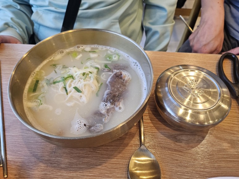 주문한 미소곰탕 뽀얀국물에 면사리도 들어있고, 소금넣고 국물을 떠먹어 보니 담백하고 고소하니 맛있다. 큰쭌이가 밥을말아 김치와함께 맛있다며 열심히 먹는다.
