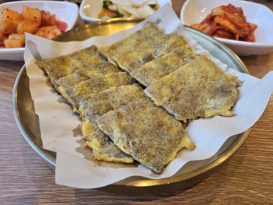 간이잘맞고 막 부쳐나와서 따끈따끈하고 노릇노릇 기름진 전을 간장에 찍어 한입 먹어보니 입에서 살살 녹는다.