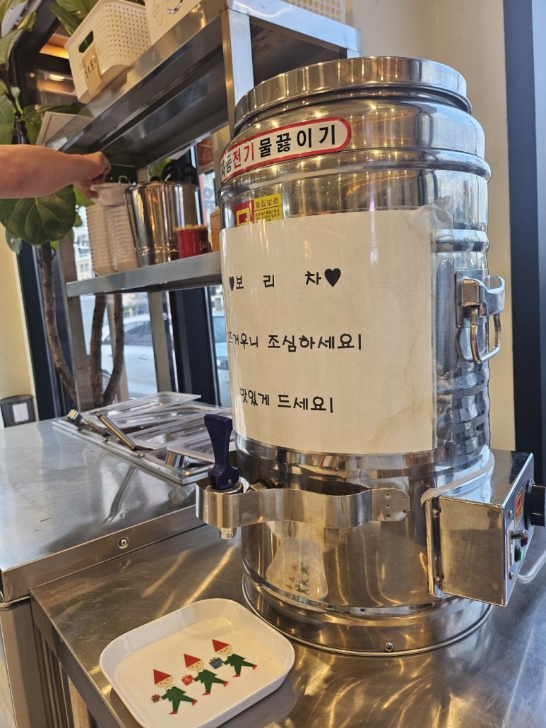 셀프바가 있어 반찬이 부족하면 가져다 먹을 수 있고, 따뜻한 보리차가 준비되어 있어서 음식 나오기전 홀짝홀짝 마시며 기다렸다.