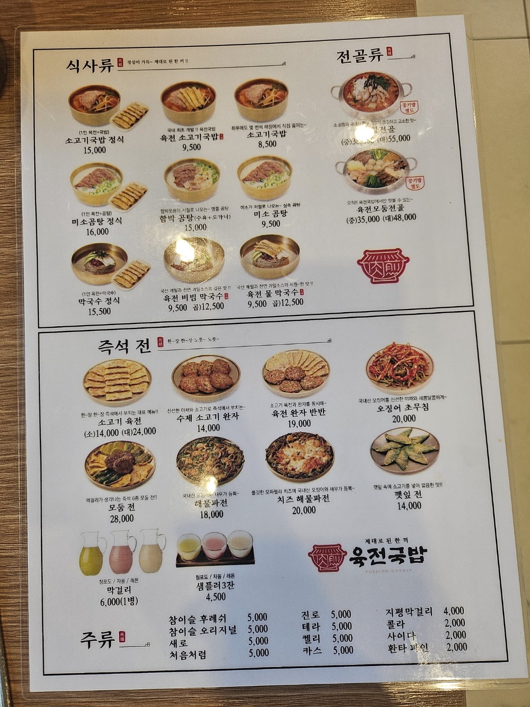 우리는 미소곰탕, 소고기국밥, 육전(소)을 주문했다.